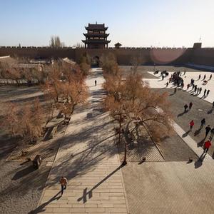 3月4日,游客在嘉峪關(guān)關(guān)城景區參觀(guān)游覽(無(wú)人機照片)。