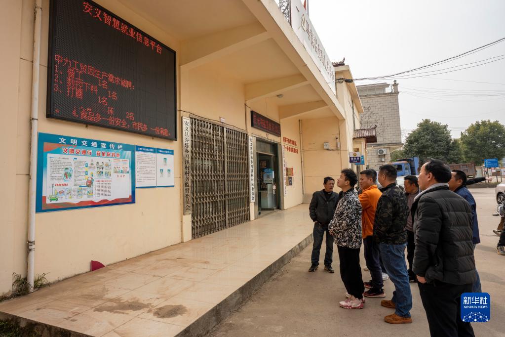 在江西省安義縣喬樂(lè )鄉馬溪村,當地村民在“村頭寶”平臺上瀏覽近期的企業(yè)招工信息(3月3日攝)。