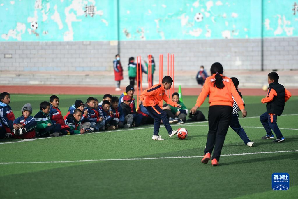 3月1日,在玉樹(shù)州曲麻萊縣第一完全小學(xué),曲麻萊青訓隊球員在訓練課上。