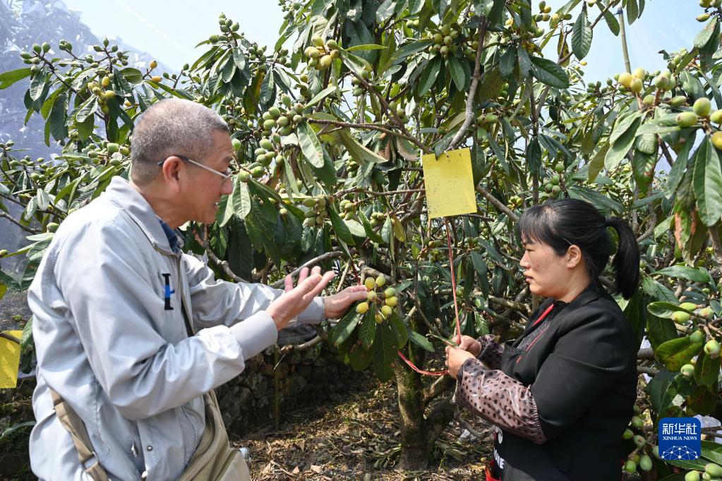 3月3日,云霄縣農業(yè)農村局高級農藝師陳天佑(左)在吳素華的枇杷種植園進(jìn)行技術(shù)指導。