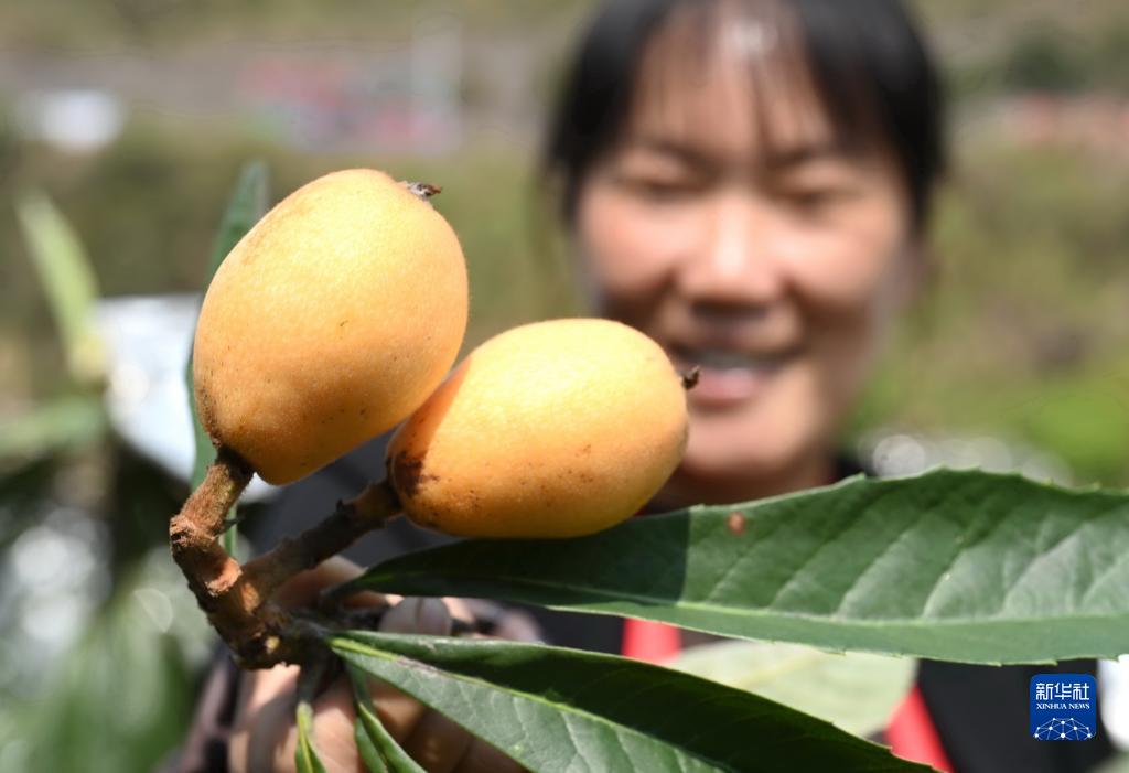 3月3日,吳素華在棪樹(shù)村枇杷園展示剛采摘的新鮮枇杷。
