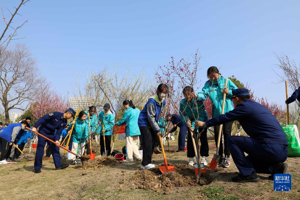 當日,合肥市包河區濱湖世紀社區聯(lián)合轄區消防工作人員在雨水公園開(kāi)展“手牽手護綠一起行”義務(wù)植樹(shù)活動(dòng),綠化家園。