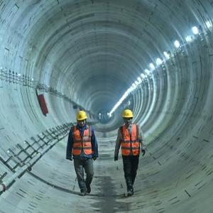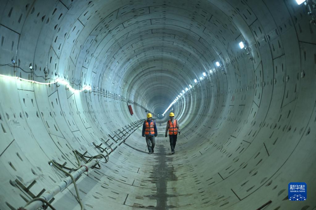 3月7日,工作人員走在貫通后的合肥軌道交通4號線(xiàn)南延線(xiàn)盾構隧道內。