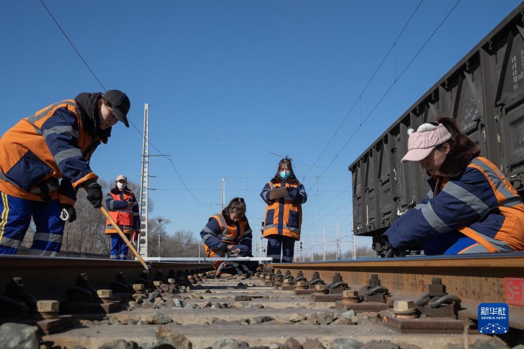 在中國鐵路哈爾濱局集團有限公司大慶工務(wù)段杜爾伯特線(xiàn)路車(chē)間,有一個(gè)6人組成的女子檢驗班,她們平均年齡29歲。雖然成立不足兩年,卻肩負重任。她們負責的工區里除了糧食和石油運輸線(xiàn),還有濱洲線(xiàn)148公里上下行線(xiàn)路,是中歐班列東部運輸通道的重要一環(huán),年過(guò)貨量達1.5億噸,高峰期平均每13分鐘就有一趟列車(chē)經(jīng)過(guò)。由于工區線(xiàn)路經(jīng)過(guò)扎龍濕地,鐵軌路基含水量高,凍害嚴重,日常檢修任務(wù)量大。夏天日曬雨淋、冬天頂風(fēng)冒雪,艱苦的條件沒(méi)有讓她們畏懼,反而激發(fā)她們的戰斗熱情,成為工友眼中的“鐵木蘭”。