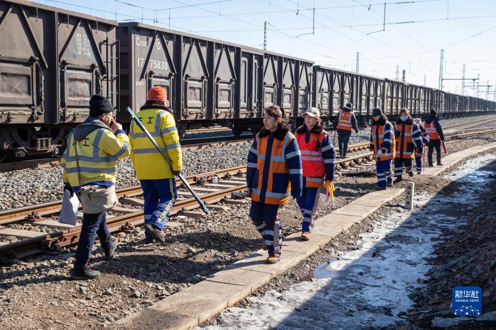 3月6日,在杜爾伯特火車(chē)站內,女子檢驗班前往作業(yè)點(diǎn)。