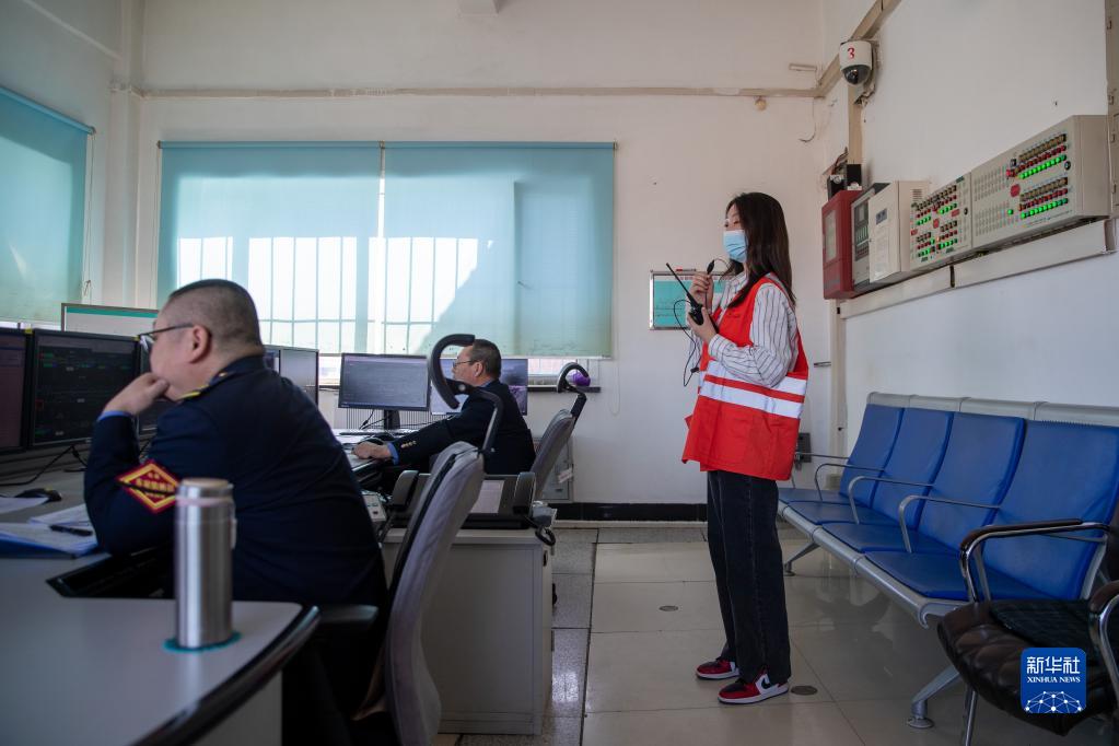 3月6日,在杜爾伯特火車(chē)站信號樓,女子檢驗班的王可正在觀(guān)察車(chē)輛運行情況。