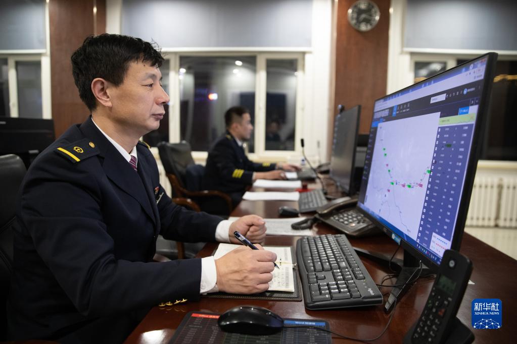 邢云堂在中國鐵路哈爾濱局集團有限公司三棵樹(shù)機務(wù)段動(dòng)車(chē)運用車(chē)間應急指導中心值班(2月18日攝)。