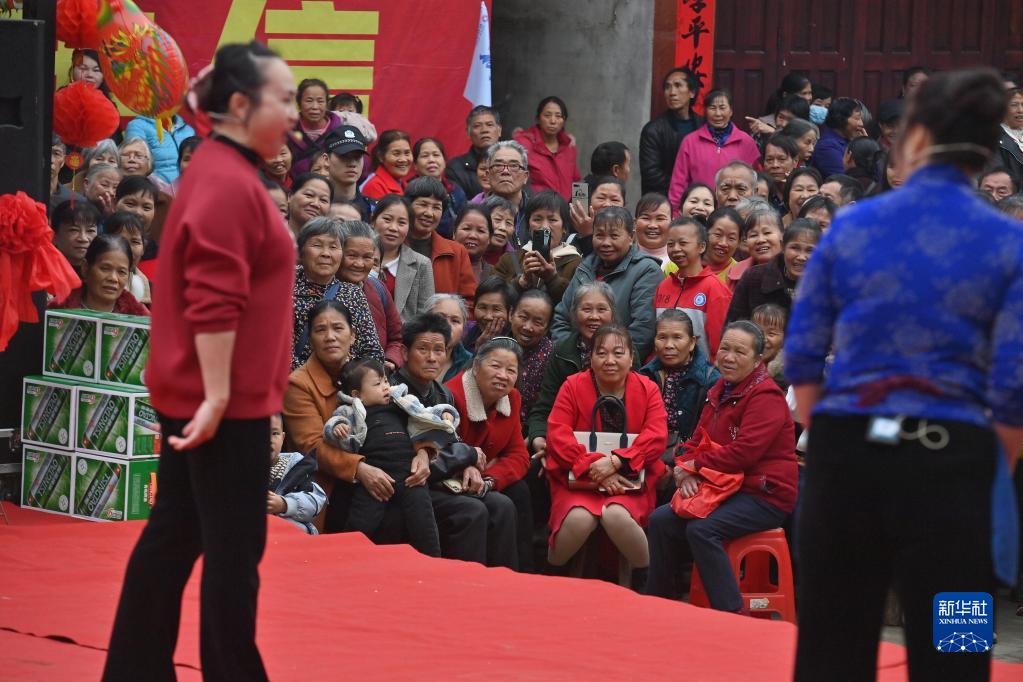 3月7日是廣西柳州市融安縣大將鎮龍妙村農歷二月十六傳統會(huì )期,龍妙村的婦女在觀(guān)看民俗表演。