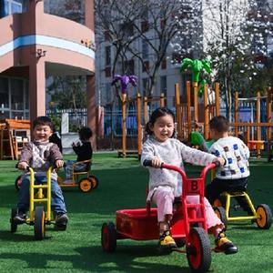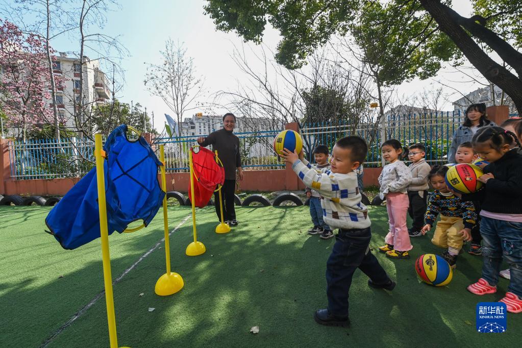 3月7日,在嘉興市南湖區桂苑社區的桂苑幼兒園內,孩子們在操場(chǎng)上玩游戲。
