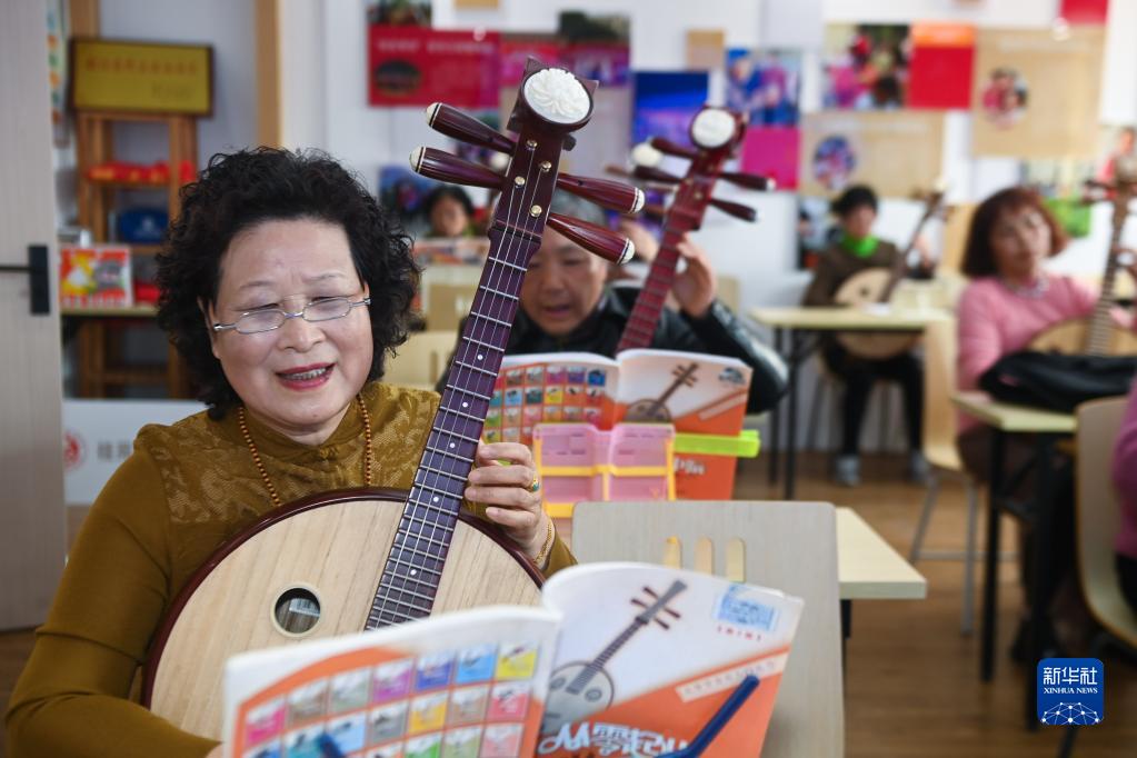 3月7日,在嘉興市南湖區桂苑社區的老年大學(xué)活動(dòng)室內,老人們在老師的指導下學(xué)琴。