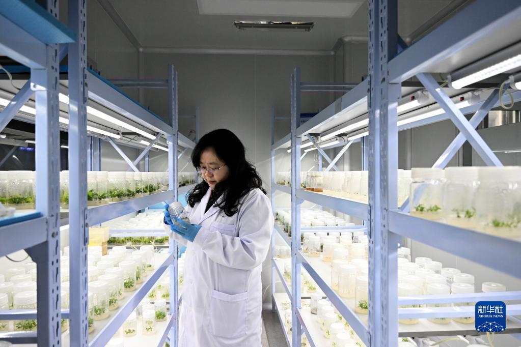 3月2日,中科院合肥物質(zhì)科學(xué)研究院智能機械研究所黨委書(shū)記、副所長(cháng)吳麗芳在植物組織培養間觀(guān)察組培苗的長(cháng)勢。