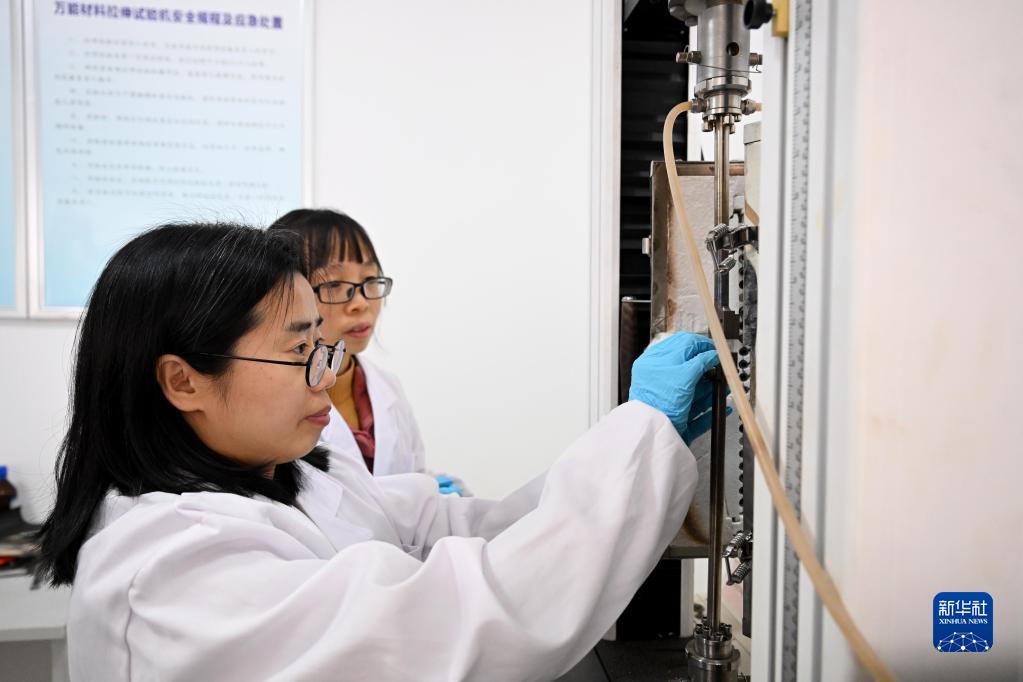 3月2日,中科院合肥物質(zhì)科學(xué)研究院核能安全技術(shù)研究所核材料與結構安全研究室主任、研究員鄭明杰(前)在測試新材料的拉伸性能。