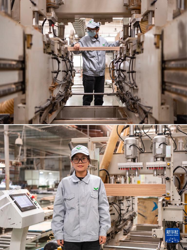 拼版照片:上圖為七臺河市雙葉家具實(shí)業(yè)有限公司工人蘆偉在生產(chǎn)車(chē)間內作業(yè);下圖為蘆偉在崗位上留影(3月7日攝)。