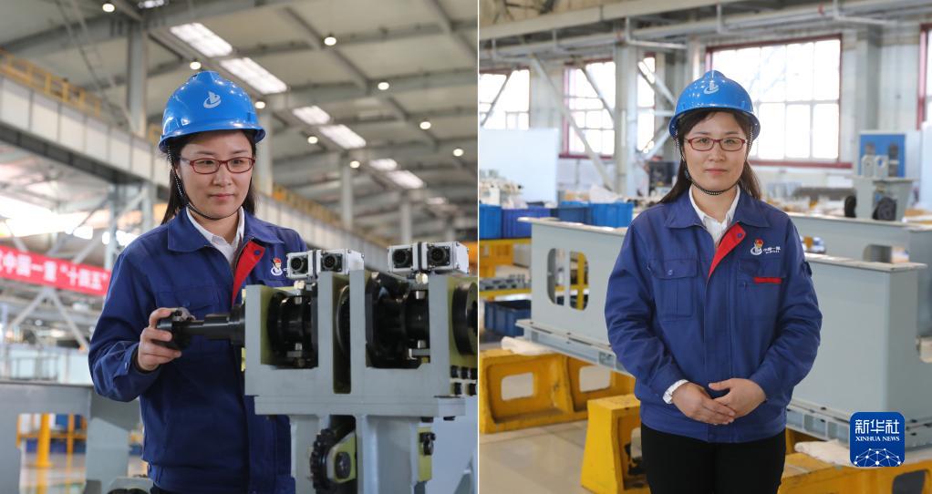 拼版照片:左圖為中國一重集團公司專(zhuān)項裝備公司制造中心技術(shù)組業(yè)務(wù)師宋明靜在作業(yè)中;右圖為宋明靜在裝配生產(chǎn)現場(chǎng)(3月6日攝)。