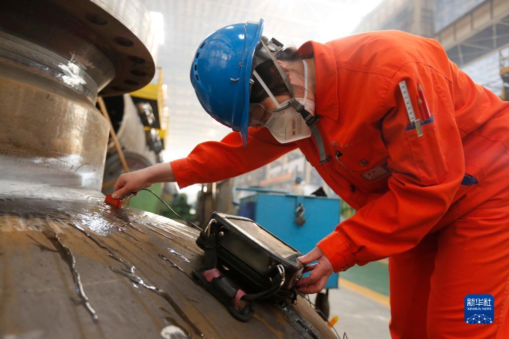 3月6日,哈電集團哈爾濱鍋爐廠(chǎng)有限責任公司探傷工李紅在作業(yè)中。