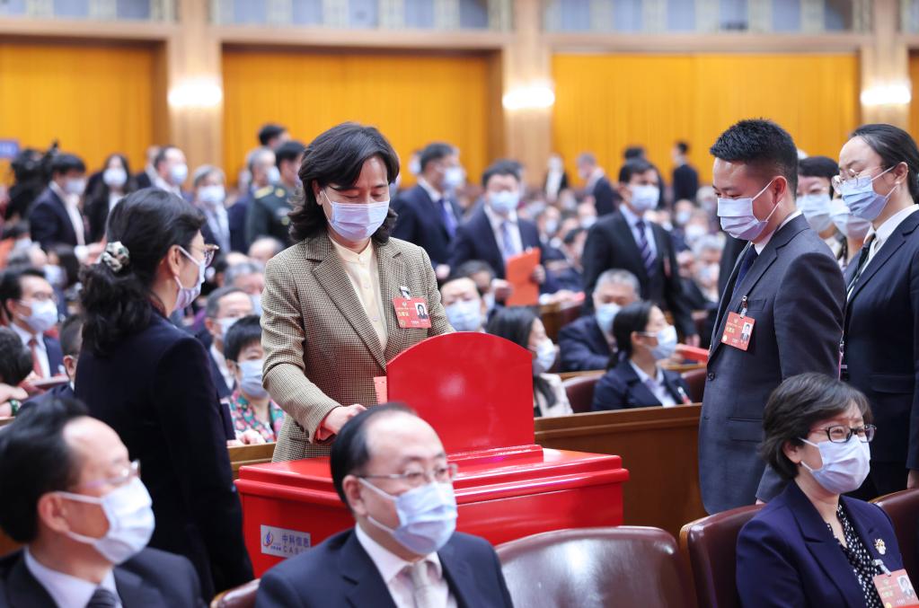 3月10日,全國政協(xié)十四屆一次會(huì )議在北京人民大會(huì )堂舉行第三次全體會(huì )議。這是委員在投票。