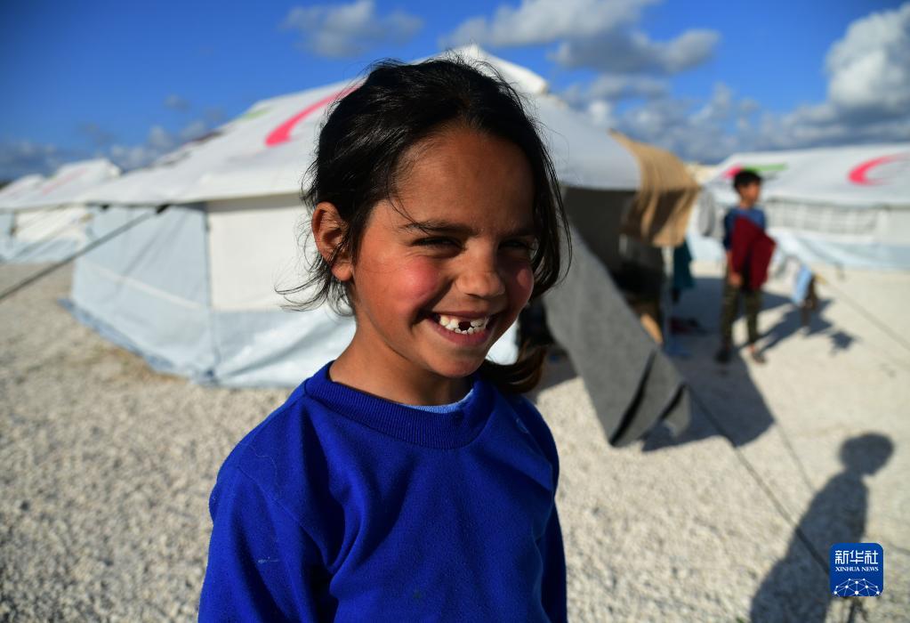 這是3月9日在敘利亞杰卜萊的一處災民安置營(yíng)內拍攝的兒童。