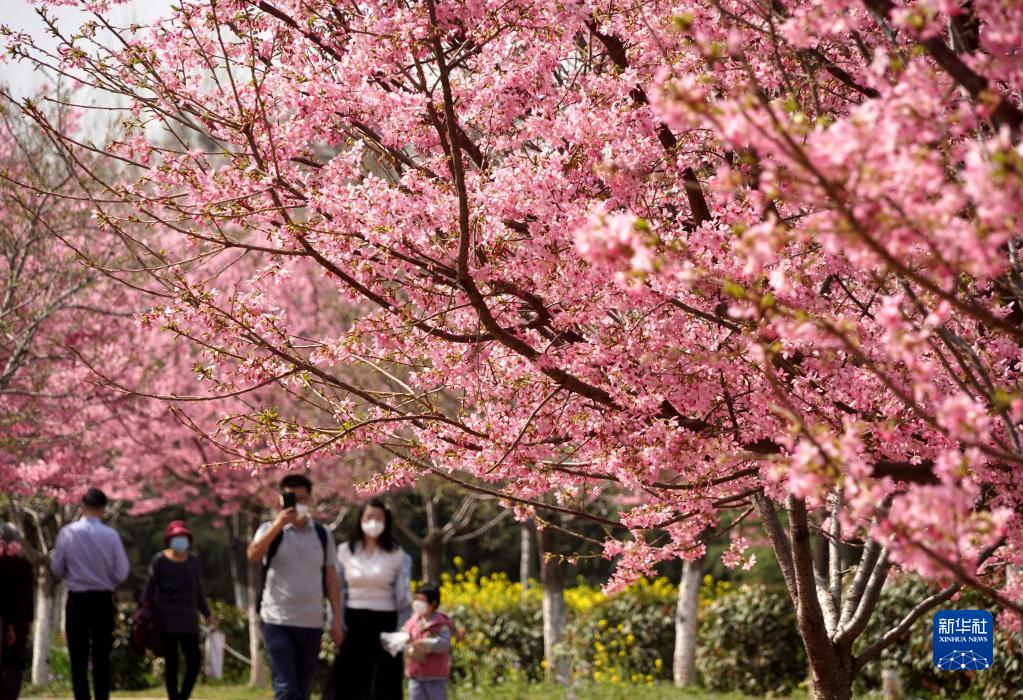 當日,2023年河南·滎陽(yáng)第八屆黃河櫻花節在滎陽(yáng)市古柏渡豐樂(lè )櫻花園開(kāi)幕,園內綻放的早櫻吸引市民前來(lái)賞花游玩。古柏渡豐樂(lè )櫻花園有80余種櫻花,約12萬(wàn)余株,早、中、晚櫻次第開(kāi)放,賞花期從3月持續至4月中旬。