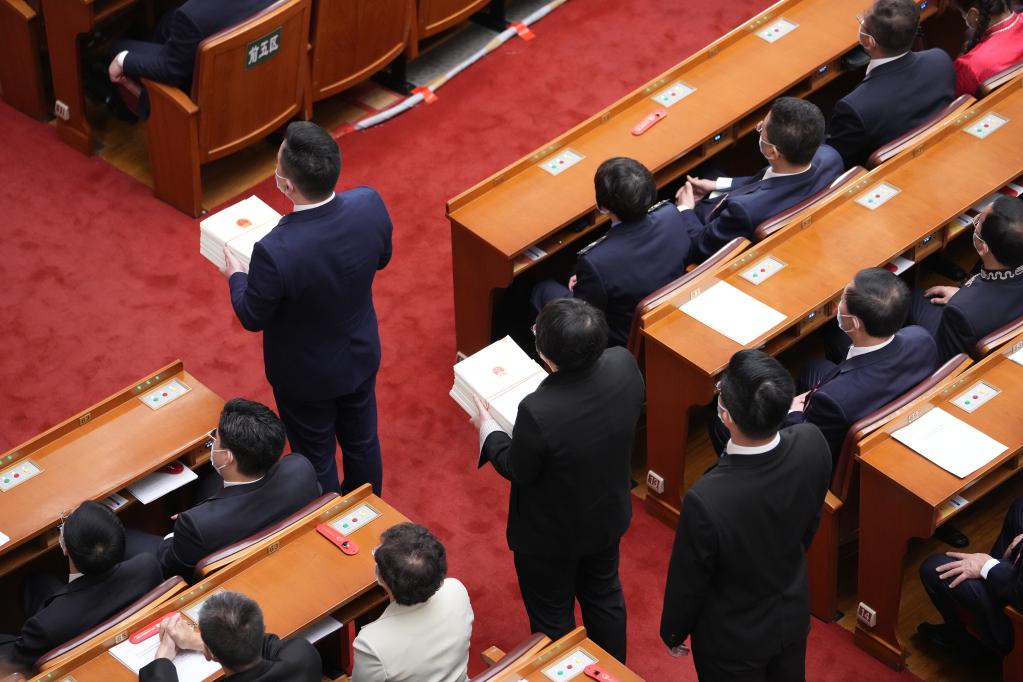 3月10日,十四屆全國人大一次會(huì )議在北京人民大會(huì )堂舉行第三次全體會(huì )議。這是工作人員準備發(fā)放選票。