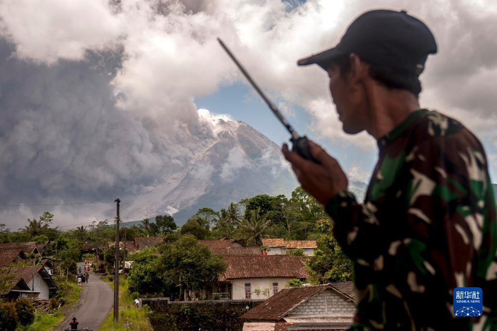 這是3月11日在印度尼西亞日惹拍攝的噴發(fā)的默拉皮火山。