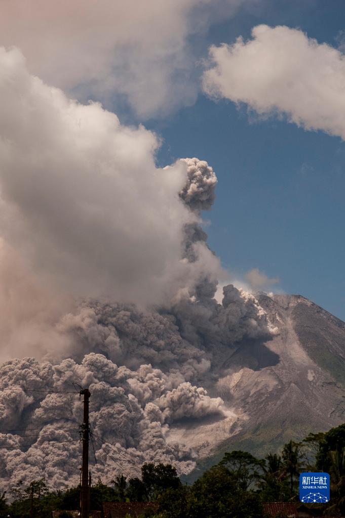 這是3月11日在印度尼西亞日惹拍攝的噴發(fā)的默拉皮火山。