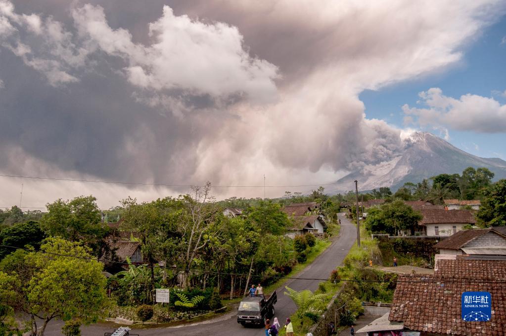這是3月11日在印度尼西亞日惹拍攝的噴發(fā)的默拉皮火山。