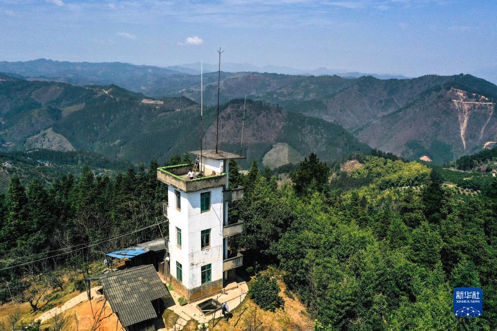 3月9日,黃同維在火情瞭望塔上觀(guān)測(無(wú)人機照片)。