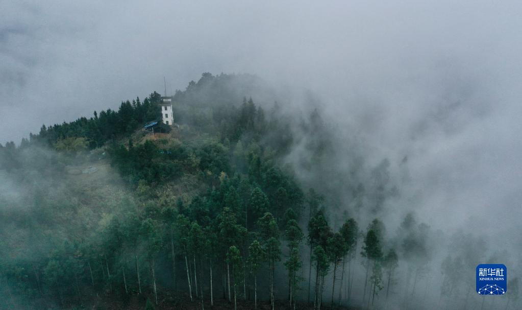 這是黃同維所負責的貴州省榕江縣西山火情瞭望塔(3月9日攝,無(wú)人機照片)。