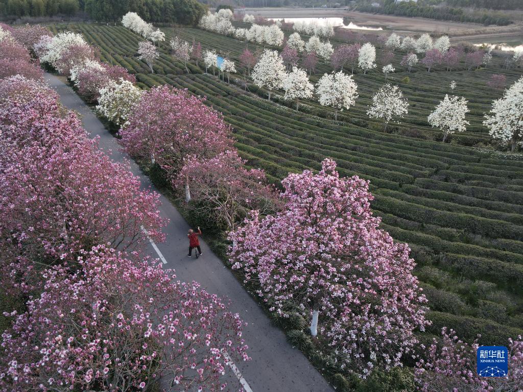 近日,隨著(zhù)氣溫回升,位于江西省南昌市南昌縣鳳凰溝景區的大片玉蘭花、郁金香、櫻花競相綻放,吸引了眾多游客前往踏春游玩。