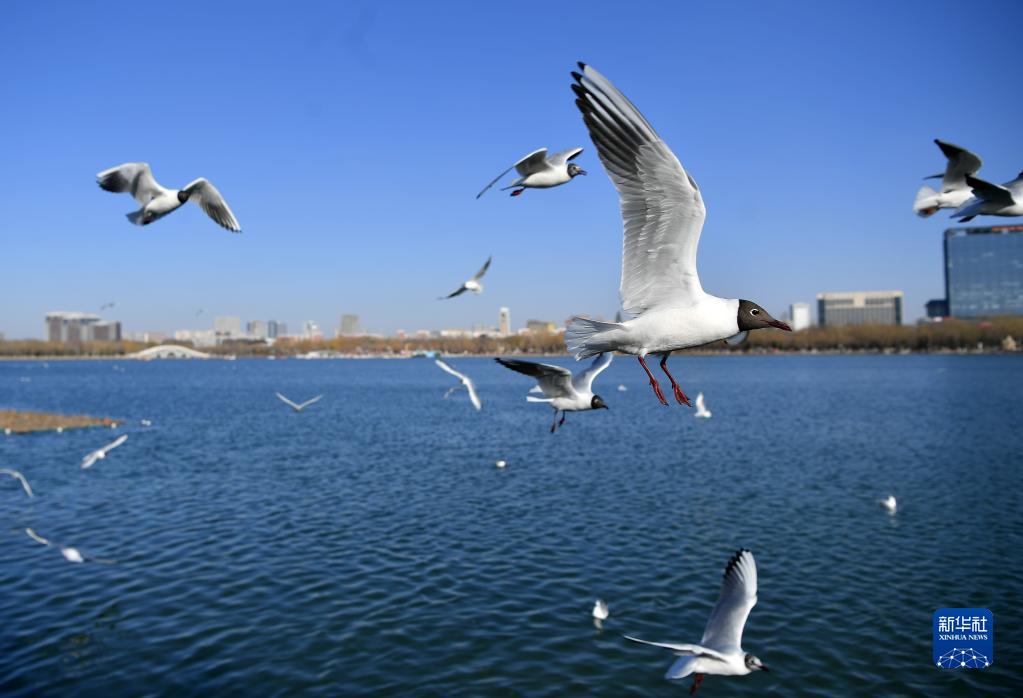 近日,隨著(zhù)天氣逐漸轉暖,寧夏銀川市海寶公園迎來(lái)大批紅嘴鷗、遺鷗等候鳥(niǎo)。
