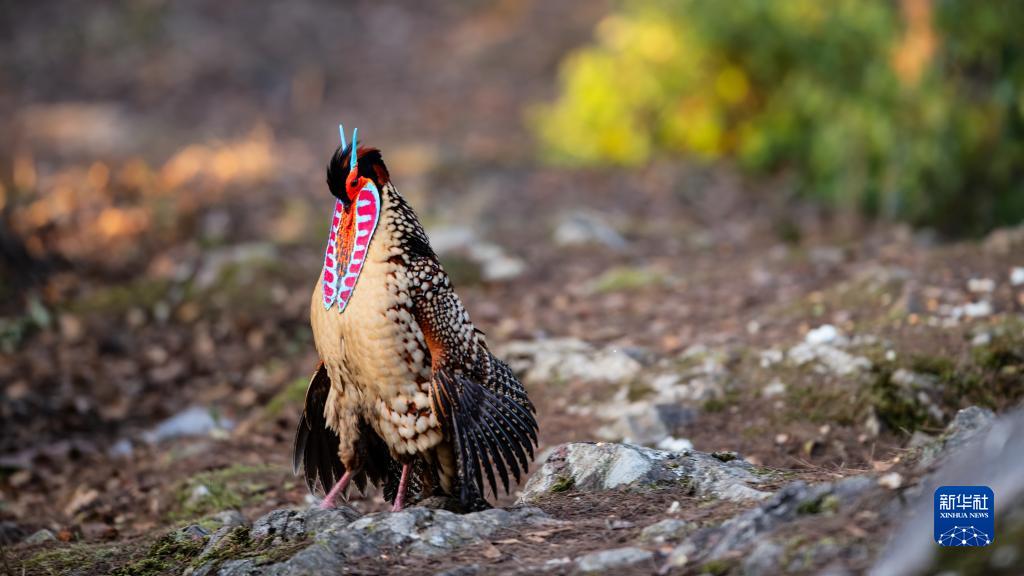 3月10日,在福建省建甌市小橋鎮梨山,一只黃腹角雉展示肉裙。