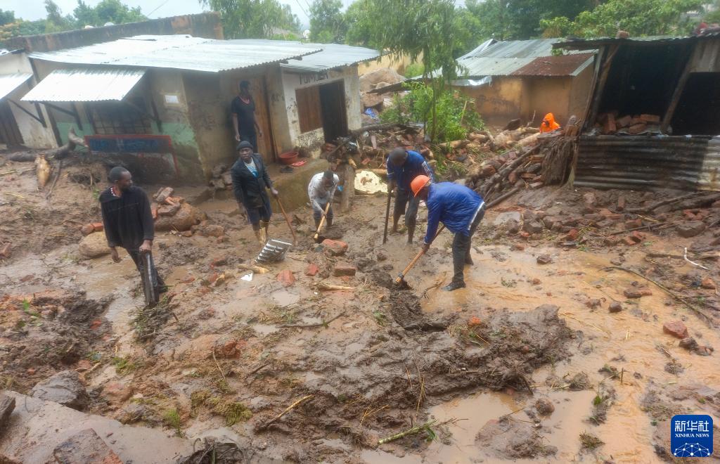 3月13日,在馬拉維南部布蘭太爾地區,救援人員在清理淤泥。