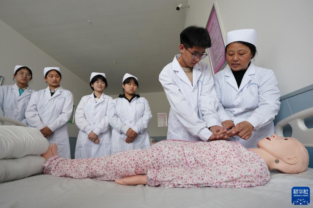 3月14日,河北省巨鹿縣職業(yè)技術(shù)教育中心護理專(zhuān)業(yè)的學(xué)生在學(xué)習急救技能。