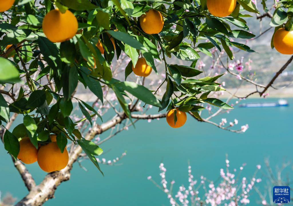 春滿(mǎn)三峽,盛開(kāi)的鮮花與成熟的春季臍橙在三峽庫區湖北省宜昌市秭歸縣沿江兩岸形成一幅幅美麗畫(huà)卷。近年來(lái),該縣在美麗鄉村建設中,因地制宜,發(fā)展臍橙種植40多萬(wàn)畝,并在臍橙園里套種桃樹(shù)、李樹(shù)等果樹(shù)。
