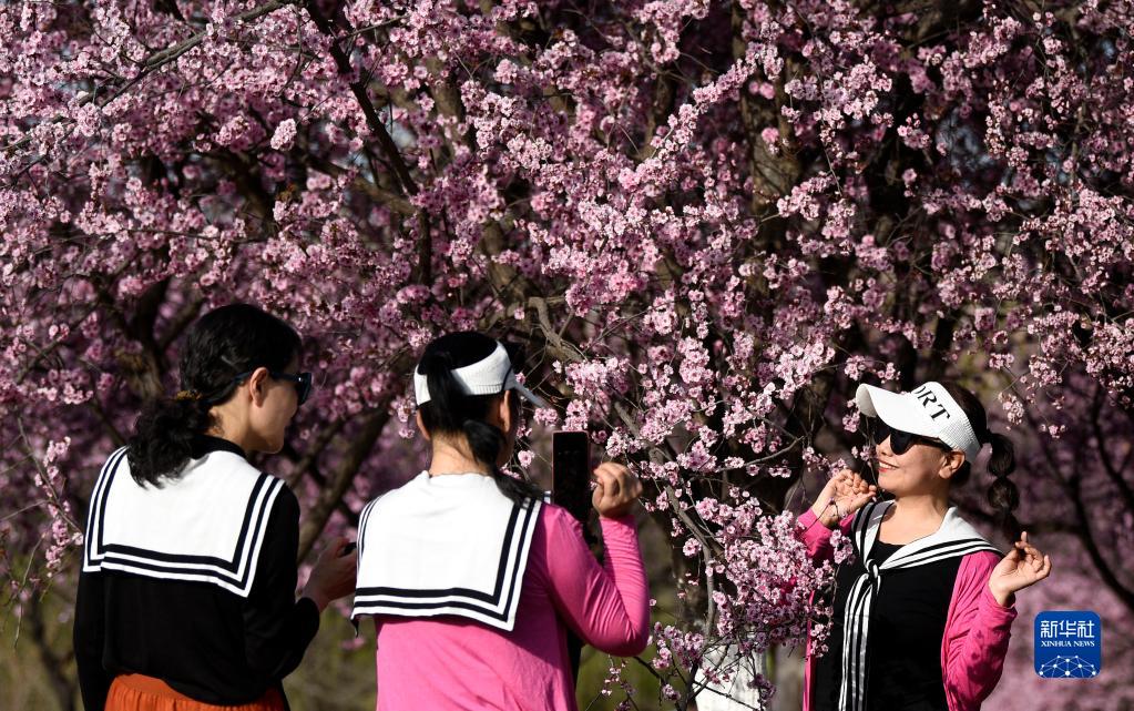 3月14日,游人在西安大明宮國家遺址公園內賞花休閑。