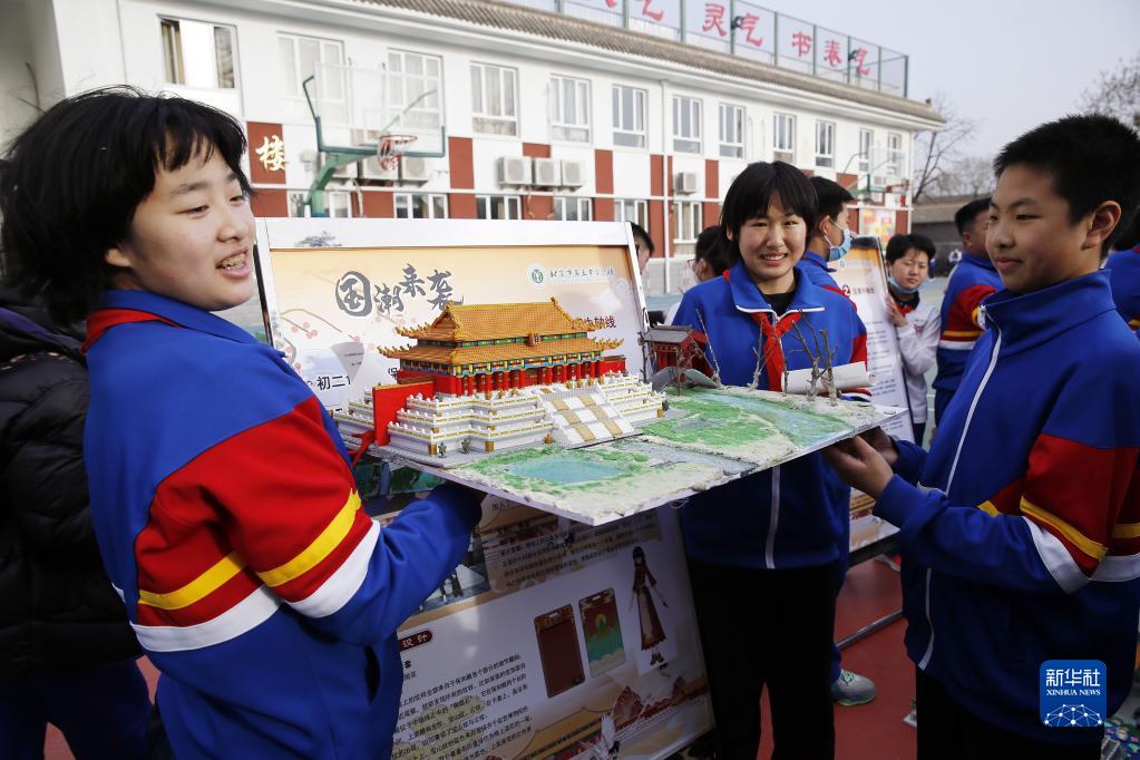 當日,北京市第五中學(xué)分校第六屆“國潮來(lái)襲——北京中軸線(xiàn)”主題科技嘉年華跨學(xué)科綜合實(shí)踐作品設計展示活動(dòng)在校園舉行。學(xué)校組織學(xué)生通過(guò)制作縮微景觀(guān)沙盤(pán)、文創(chuàng )作品設計、拍攝微電影等形式,結合語(yǔ)文、歷史、地理、藝術(shù)、信息等學(xué)科研討挖掘周邊資源,跨學(xué)科、多角度地詮釋“北京中軸線(xiàn)”的歷史文化和建設成就。