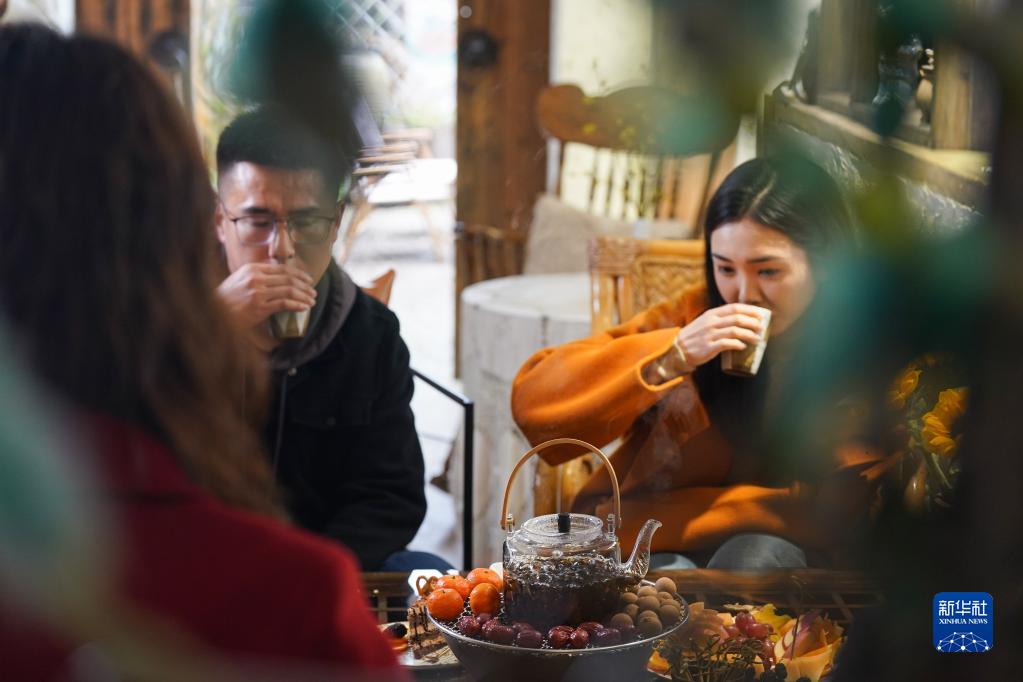 3月9日,年輕人在安徽省黃山市屯溪區的一處茶空間里“圍爐煮茶”。