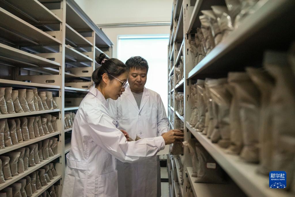 3月14日,在北大荒集團建設農場(chǎng)有限公司農業(yè)科技園區土樣室,孫凡紅(左)與同事準備化驗土壤樣品。