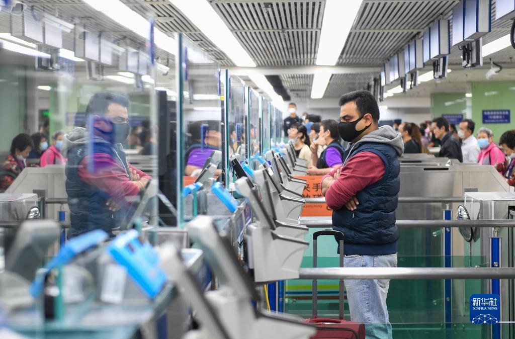 3月15日,外國旅客在深圳羅湖口岸入境檢查大廳候檢通關(guān)。