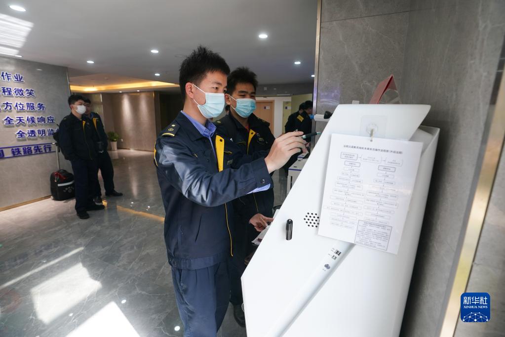 3月15日,在南京行車(chē)公寓,列車(chē)乘務(wù)人員使用自助出退勤一體機錄入信息。