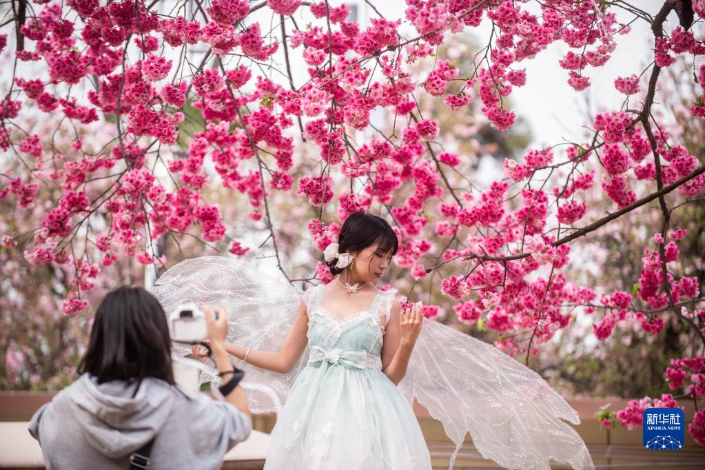 近日,云南昆明圓通山公園的櫻花進(jìn)入盛花期,吸引大批游客前來(lái)觀(guān)賞。