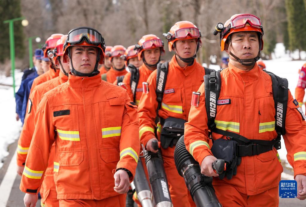 3月15日,鞏留縣森林消防大隊聯(lián)合當地多個(gè)部門(mén)的應急消防人員在庫爾德寧林區內行進(jìn)。