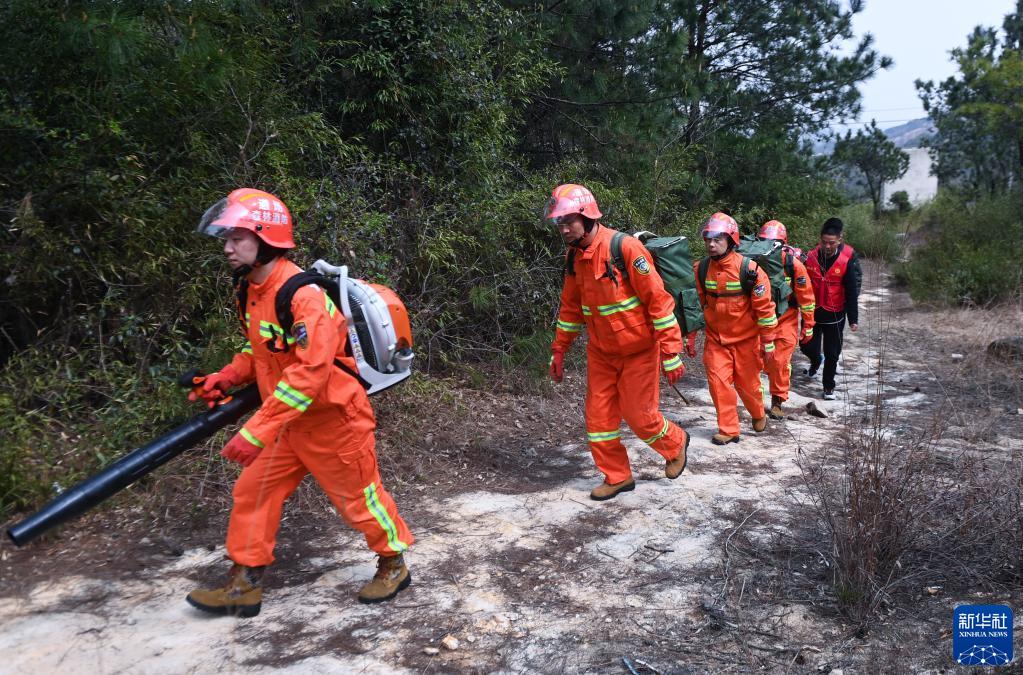 3月16日,道場(chǎng)鄉綜合森林火災應急救援隊隊員和黨員志愿者一同巡查轄區林區森林火災隱患。