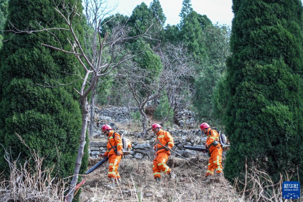 3月15日,長(cháng)清區國有蓮臺山林場(chǎng)防火中隊隊員在林區巡護。