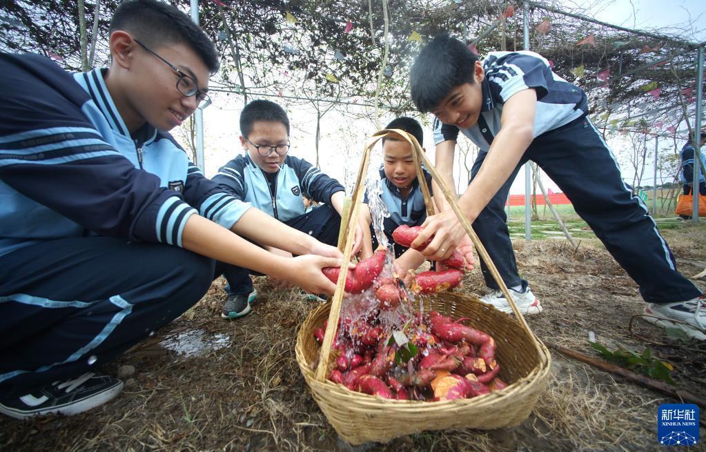 當日,廣西南寧市江南區沙井中學(xué)“田間課堂”開(kāi)課。孩子們走進(jìn)田間地頭,學(xué)習農事,體驗勞動(dòng)帶來(lái)的快樂(lè )。