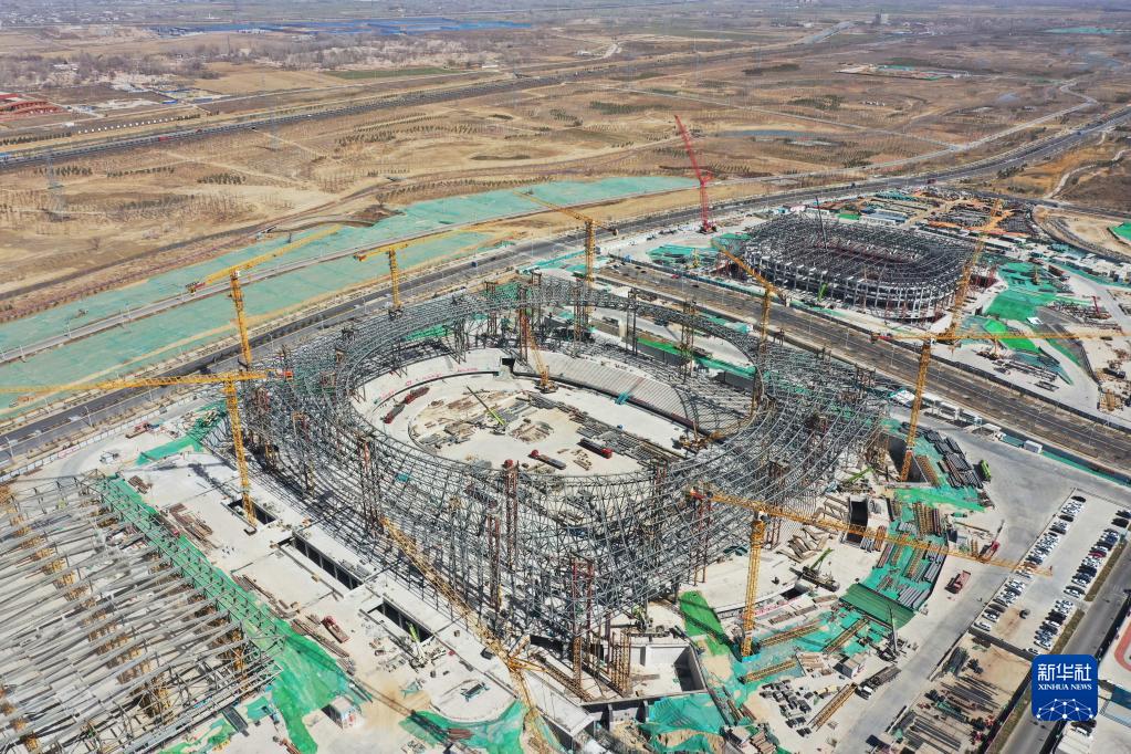 這是位于雄安新區啟動(dòng)區的雄安體育中心項目現場(chǎng)(3月15日攝,無(wú)人機照片)。