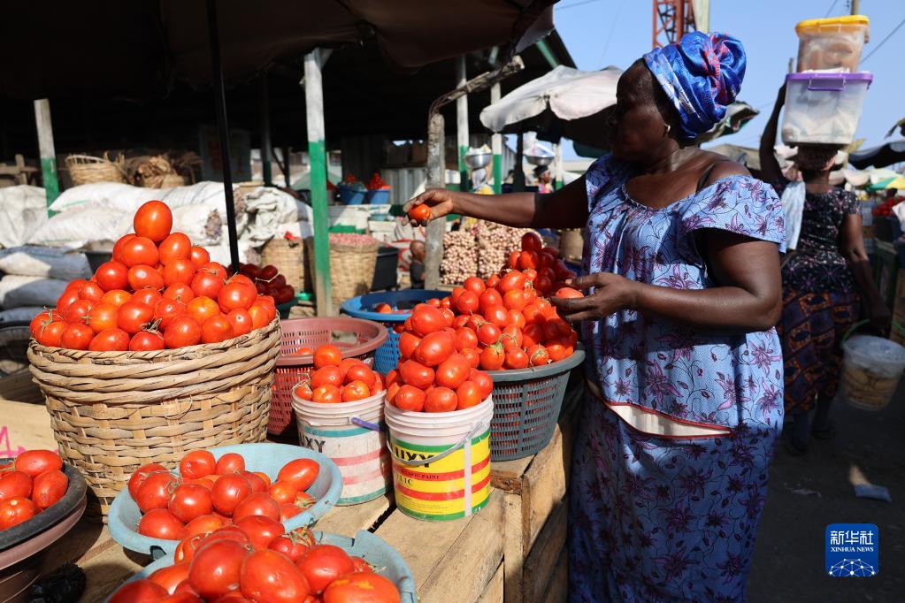 3月15日,商販在加納首都阿克拉一處市場(chǎng)兜售商品。