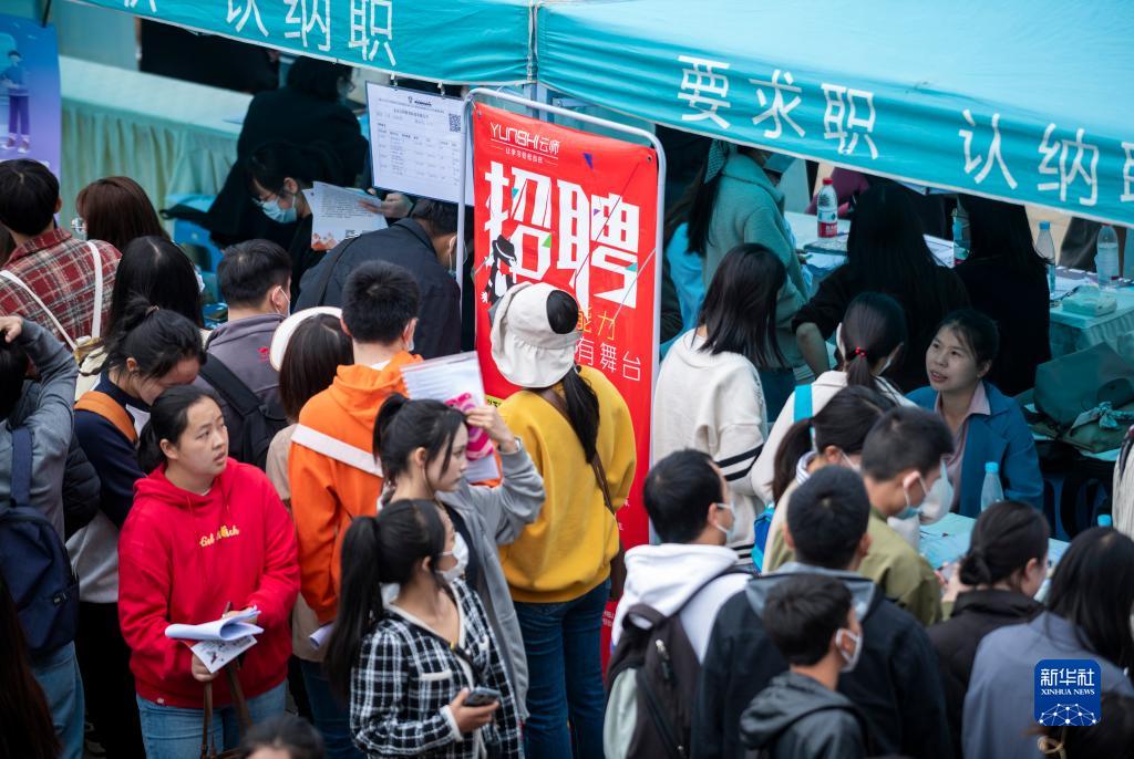 3月16日,求職者在云南師范大學(xué)呈貢主校區校園招聘會(huì )上求職。