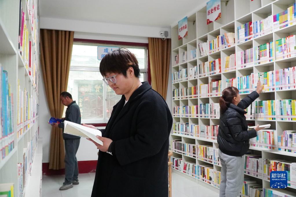 3月16日,在山東省菏澤魯西新區陳集鎮,居民在“牡丹書(shū)房”里閱讀圖書(shū)。