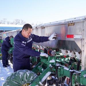 3月16日,在北大荒集團建設農場(chǎng)有限公司第四管理區,農機技術(shù)員在檢修農機具。